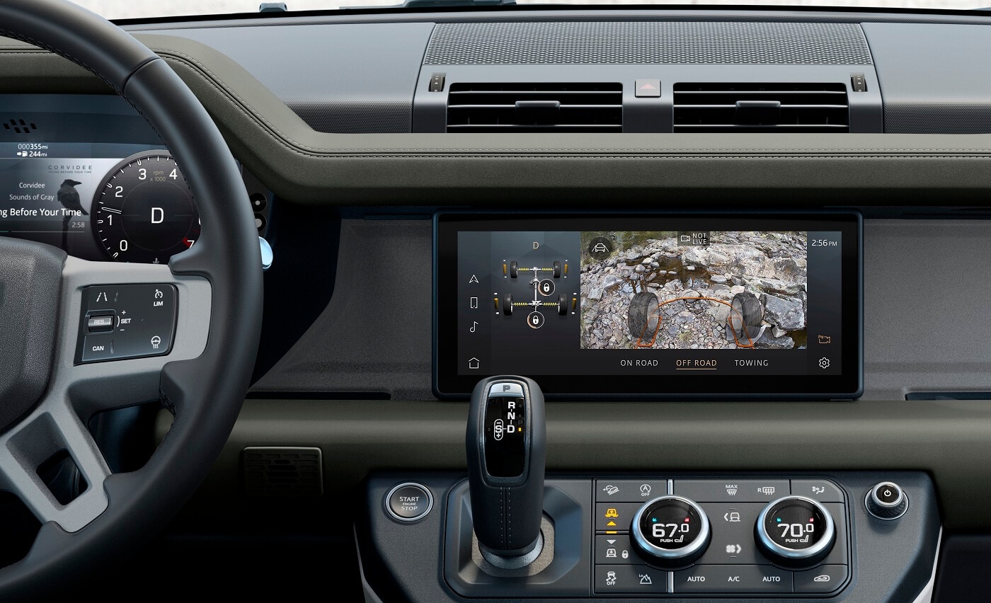 The interior of the Defender is like your home away from home. You and up to six of your fellow explorers can unwind in the available Windsor leather upholstery. Up front, you can set your ideal level of support with the 14-way adjustability. Plus, the heated and cooled front seats will keep you comfortable in every season.