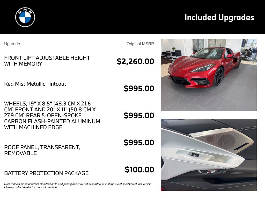 Indulge in the ultimate driving experience with the Corvette's impressive array of premium features, including a Bose Performance Series Sound System, Heads-Up Display, and Wireless Charging for your devices. The Memory Driver & Passenger Convenience Package and Preferred Equipment Group 2LT further elevate your driving pleasure.