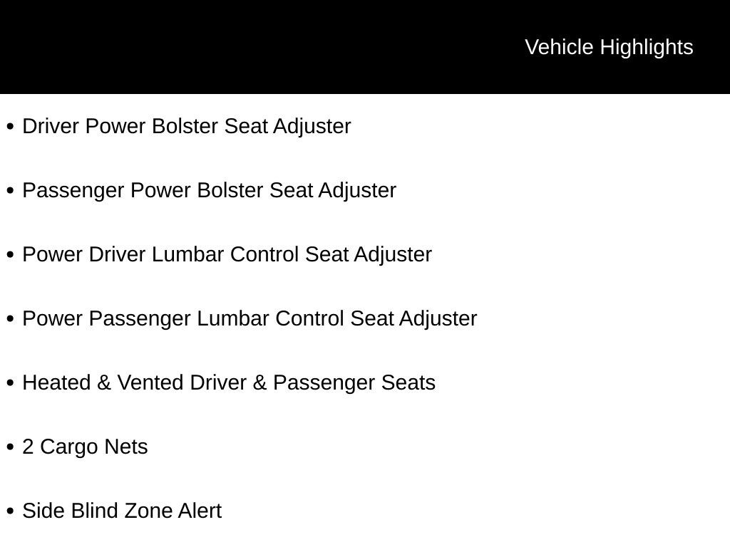- Heated & Vented Driver & Passenger Seats